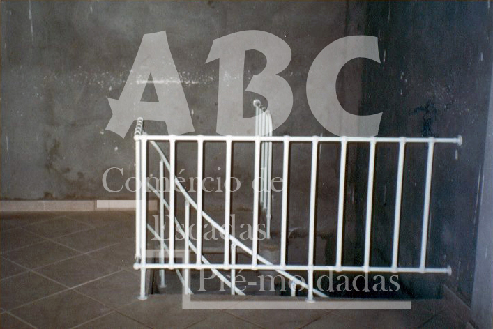 Escadas pré-moldadas em concreto aparente e corrimãos em ferro ou alumínio