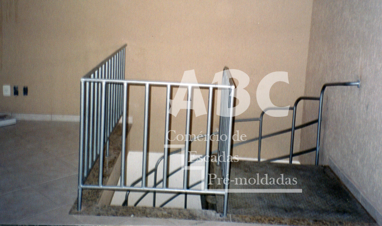 Escadas pré-moldadas em concreto aparente e corrimãos em ferro ou alumínio