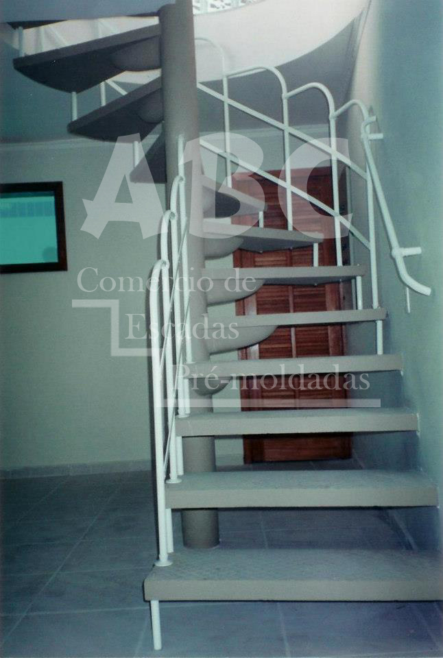 Escadas pré-moldadas em concreto aparente e corrimãos em ferro ou alumínio